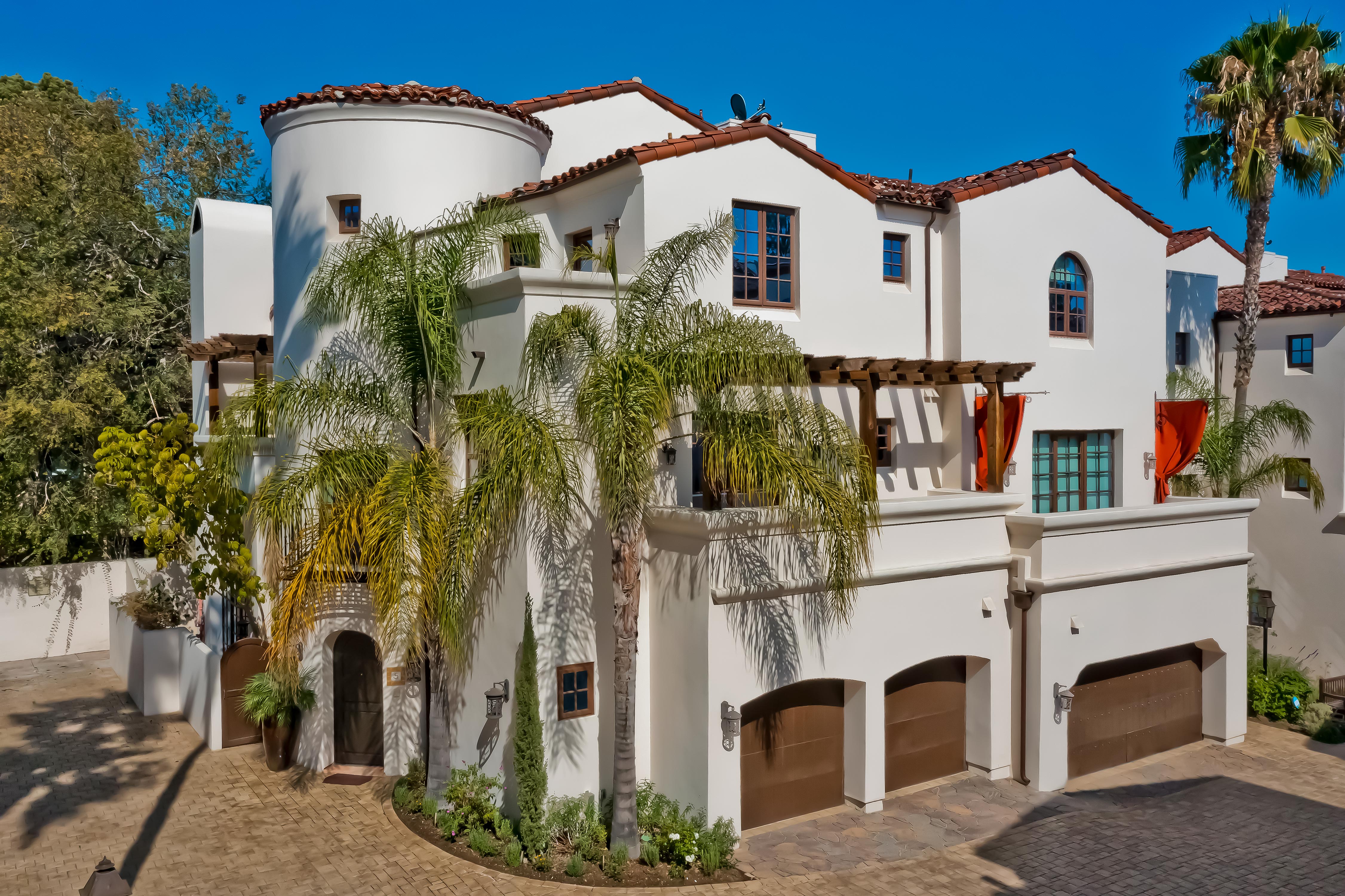 The one you’ve been waiting for! Classic Santa Barbara Revival in the coveted Las Ventanas gated community. Best location! Corner multi-level unit has a spectacular spiral staircase offering privacy reminiscent of NY Brownstone. The stunning interiors offer rich finishes including hand scraped maple floors, artistic stonework, and carved stone sink. 15’ ceilings and multiple French doors provides warm natural light perfect for artwork. Enjoy a full Viking kitchen, 2 Fireplaces, Patio with built-in BBQ, and 3 Balconies. 3 Bedrooms plus Den/Media room, and 3.5 Baths. Three TV's, Washer & Dryer, Custom built Dry Bar, and Custom built Book Cases are included. Located in the heart of Brentwood, close to shops, restaurants, parks, and a terrific farmers market. A true urban sanctuary! Attached 2 car garage, Pet friendly, EQ Insurance, and Brentwood Award Winning schools.